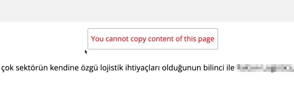 Sitedeki diğer sorun, İngilizce içerikler. Ana Sayfa, Home olarak adlandırılmış ve web sitede fare ile sağ tıklama engellenmiş ama uyarı yazısı İngilizce.