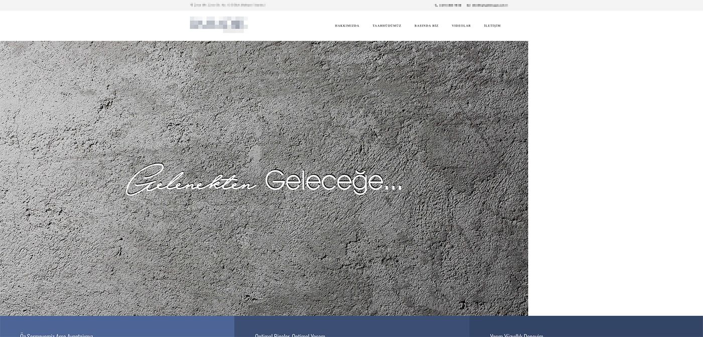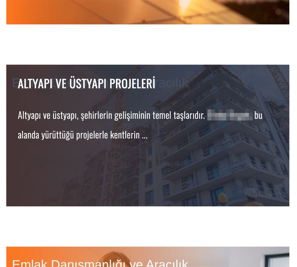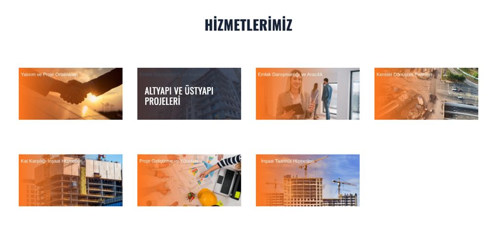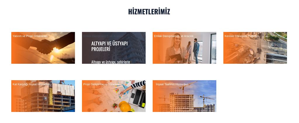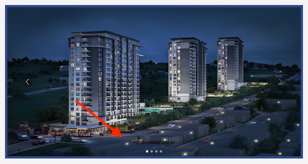 Bir inşaat firmasının web sitesinde bizi karşılayan bölüm.