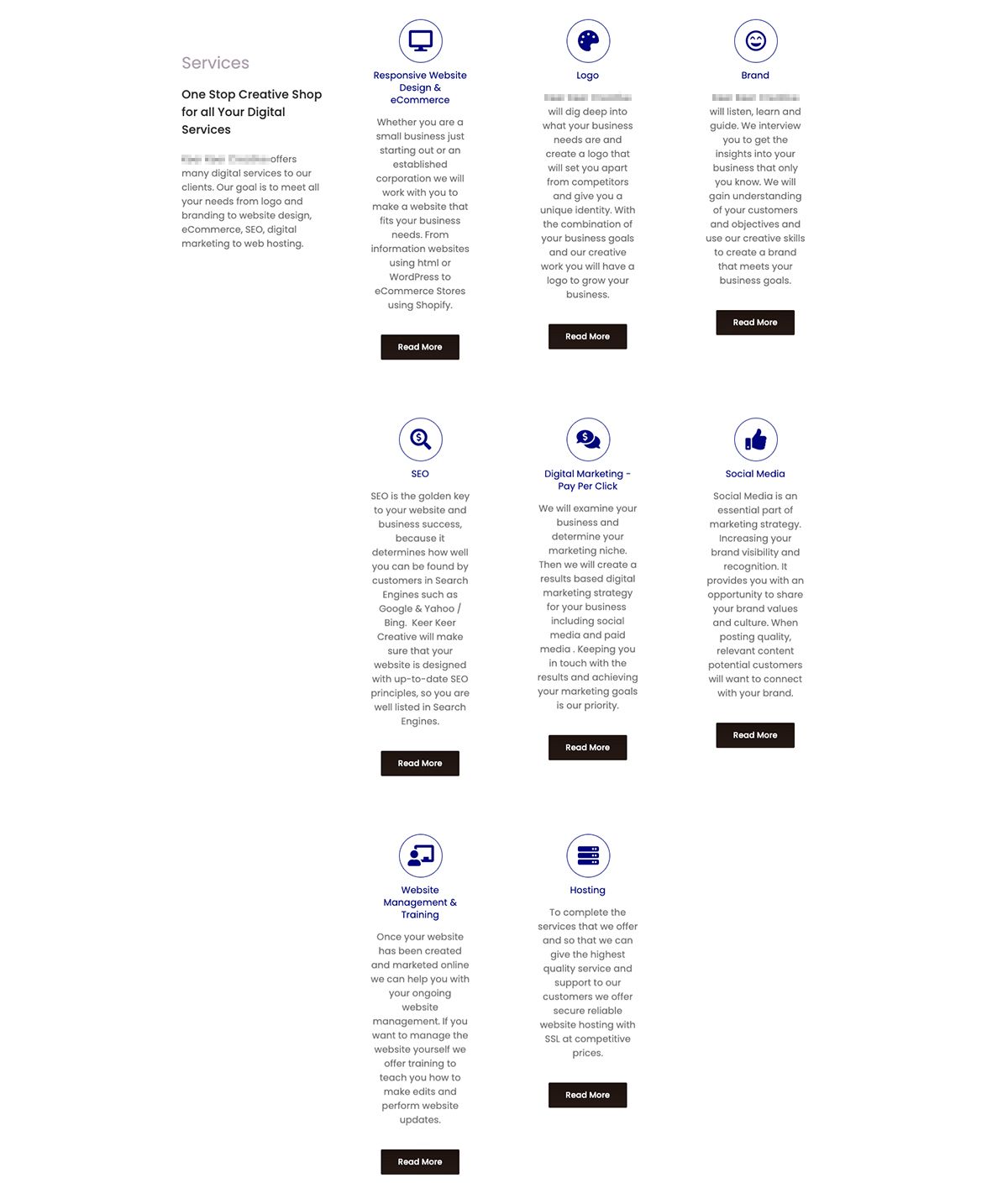 Sol taraftaki Services bölümü, sunulan hizmetlere ayrılan içeriklerin iyice sıkışmasına sebep olmuş.