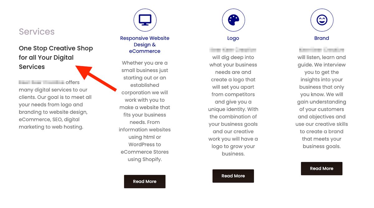 Daha önce de bahsettiğim bir noktaya yine değineceğim. Yazıların uzunluğunun eşit olması/olmaması. Bu ve benzeri sayfa düzenlerinde yazılar eşit uzunlukta olmazsa ortaya böyle uyumsuz bir görüntü çıkacaktır. Eğer hizmet bölümleri bir kutu içine alınsa ve kutular eşit yükseklikte olsa, yazılar da içine ortalansa idi, yazı uzunluğu bu şekilde göze çarpmazdı. Fakat butonların aynı hizada olmaması bile kötü bir görünüme sebep oluyor.
