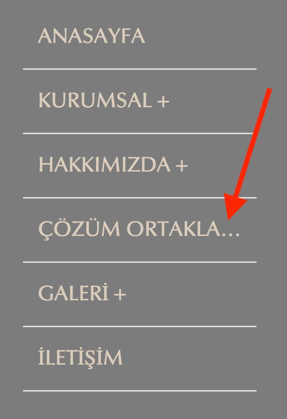 Web sitede sol bölümde sabit olarak dikey menü kullanılmış. Fakat ÇÖZÜM ORTAKLARIMIZ bölümü doğal olarak oraya sığmamış.