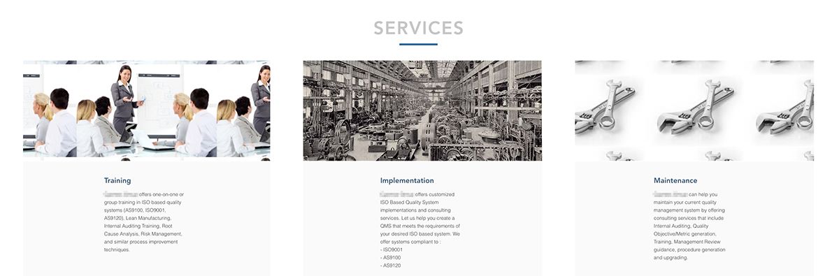 Ana Safya’daki SERVICES bölümü üçe bölünmüş. Fakat 1. ve 3. görseller için ayrılan alan i,le kullanılan görsel boyutları farklı olunca ve doğru ayarlama yapılmayınca görseller, kendine ayrılan alanı doldurabilmek için 3 kez tekrar etmek zorunda kalmış.