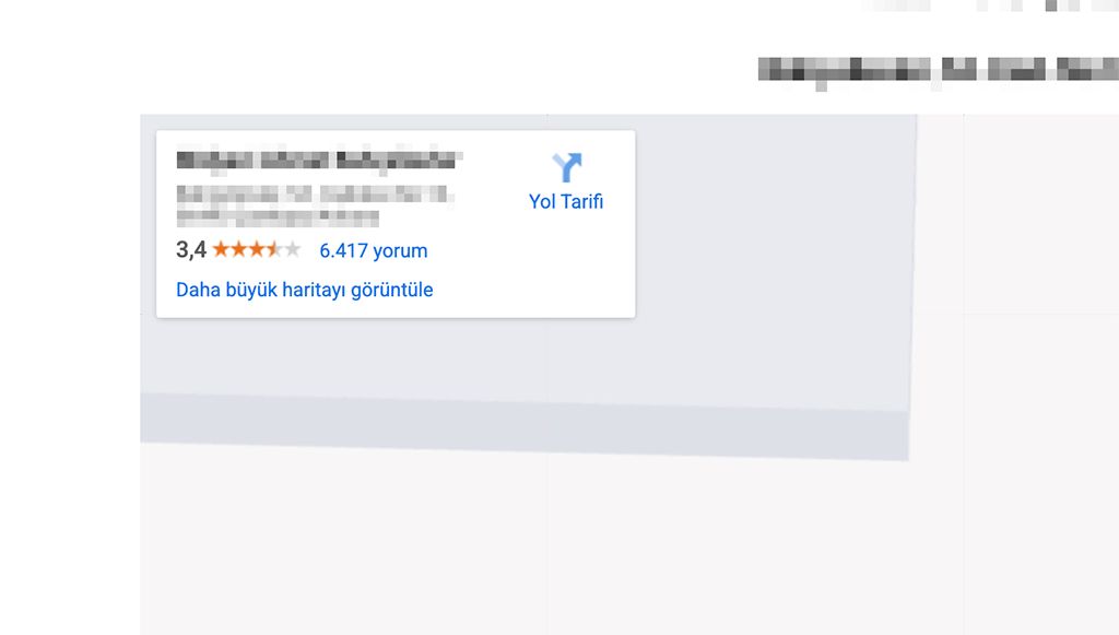 Aşağıda paylaştığım işletme binlerce değerlendirme almış ve puan ortalaması 3,4 yıldız. Burada müdahale edilmesi gereken ciddi bir sorun var demektir.