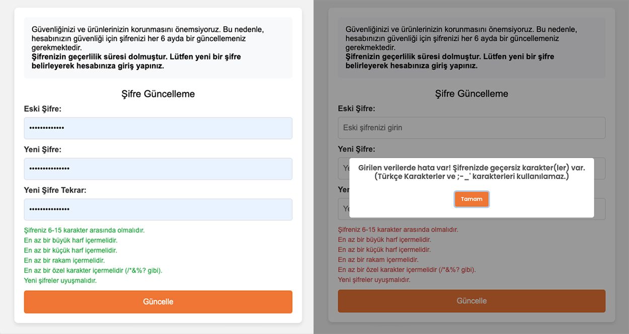 Mesela ilgili web sitede yeni şifre belirlerken aşağıda, zorunlu olan şartları sağlayıp sağlamadığınız gözüküyor. Bakıyorsunuz ki bir sorun gözükmüyor.