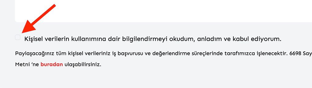 Bir formda, KVKK metnini onaylama kutucuğu. Bu formda eliniz, fare imleciniz nereye gider? Soldaki kutuya değil mi?